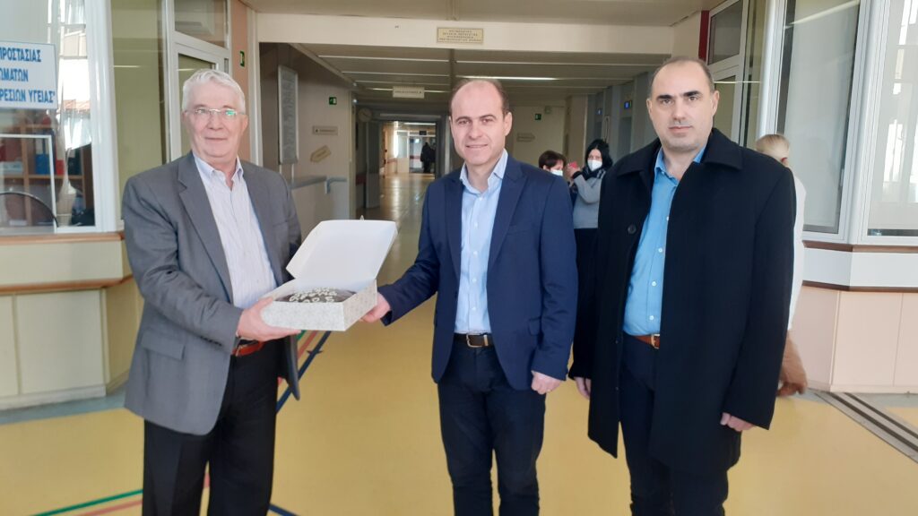Η πρώτη στάση ήταν το Γενικό Νοσοκομείο Άρτας, όπου ο Δήμαρχος συναντήθηκε με τον Διοικητή κ. Γιώργο Σιντελέ. Μετά τις ευχές του, τόνισε την έμπρακτη στήριξη του Δήμου προς το Νοσοκομείο, υπογραμμίζοντας τη σημασία της συνεργασίας για την κάλυψη τυχόν αναγκών του Ιδρύματος.