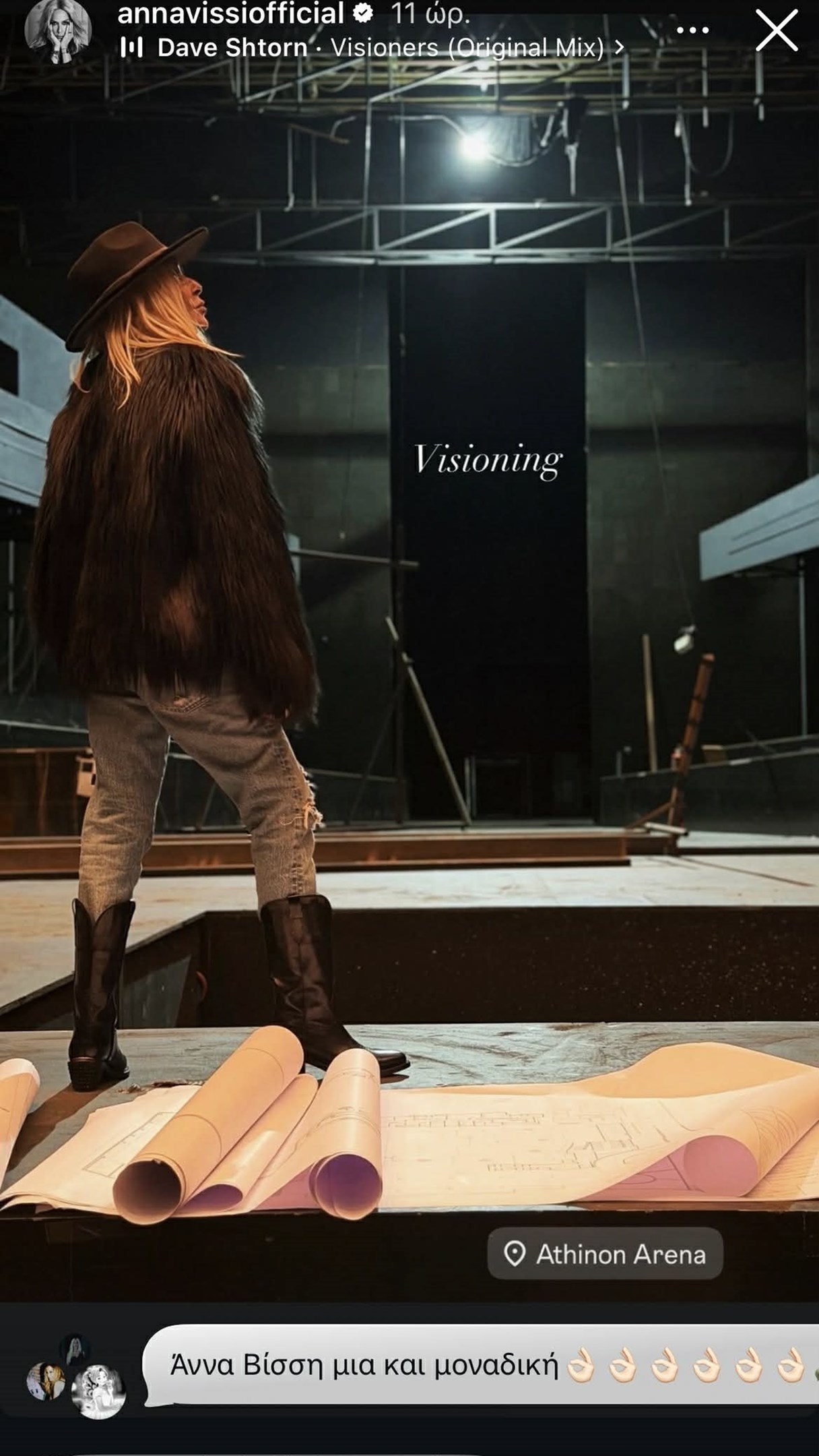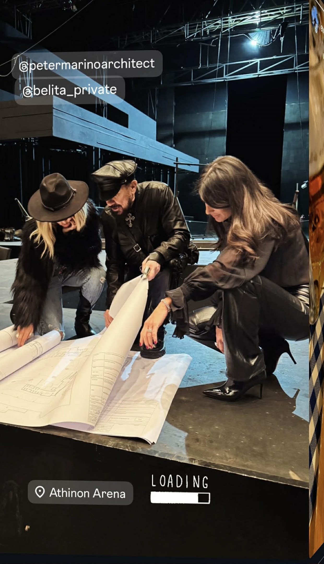 Έτσι, το Σαββατοκύριακο, η Άννα Βίσση και η Δήμητρα Κούστα μαζί με τον Πίτερ Μαρίνο επισκέφτηκαν τον χώρο και μοιράστηκαν σχετικές φωτογραφίες στα social media. Στα στιγμιότυπα, φαίνονται απλωμένα τα αρχιτεκτονικά σχέδια του Πίτερ Μαρίνο με την Άννα Βίσση και τη Δήμητρα Κούστα να τα κοιτάζουν επιμελώς. Σε άλλο στιγμιότυπο, η Άννα Βίσση βρίσκεται στη σκηνή και οραματίζεται το μέλλον της στη σκηνή.