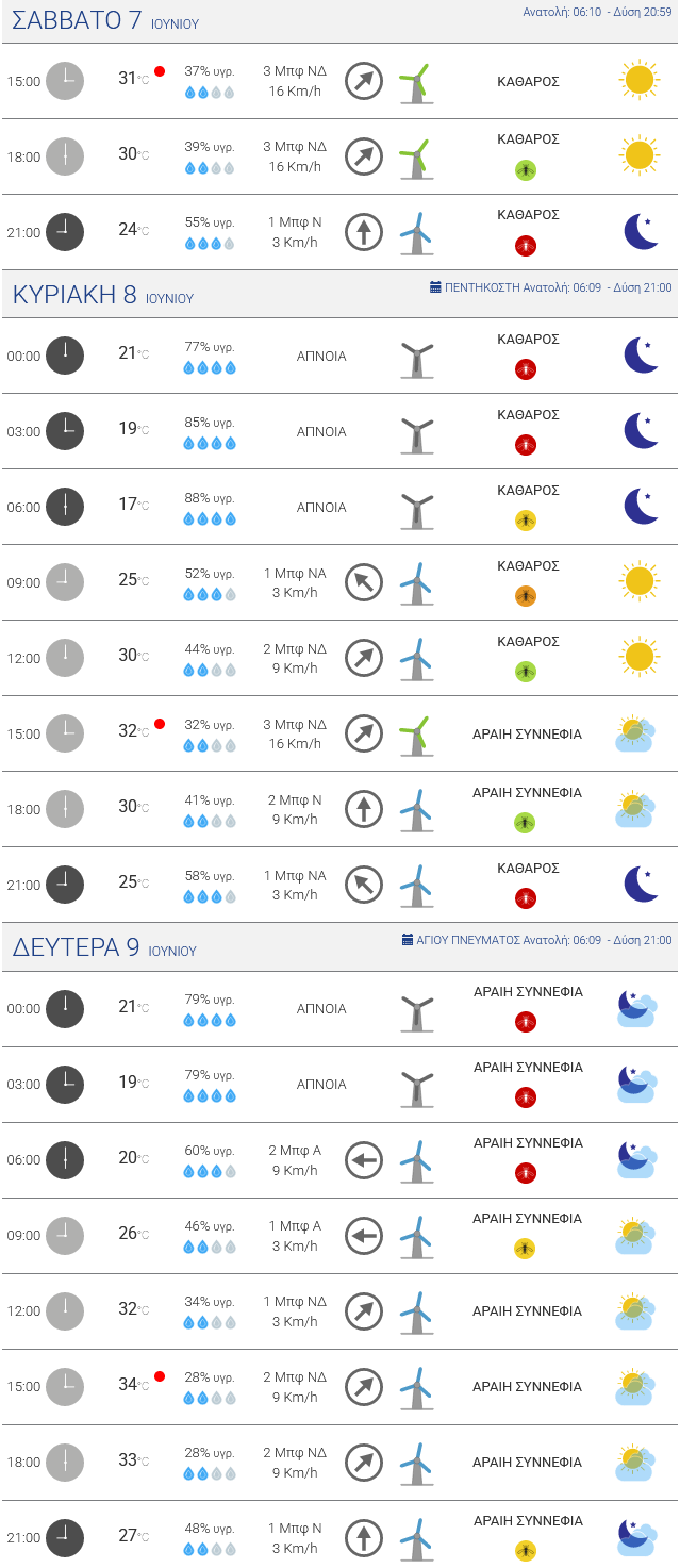 Δείτε αναλυτικά τις θερμοκρασίες [πίνακας]