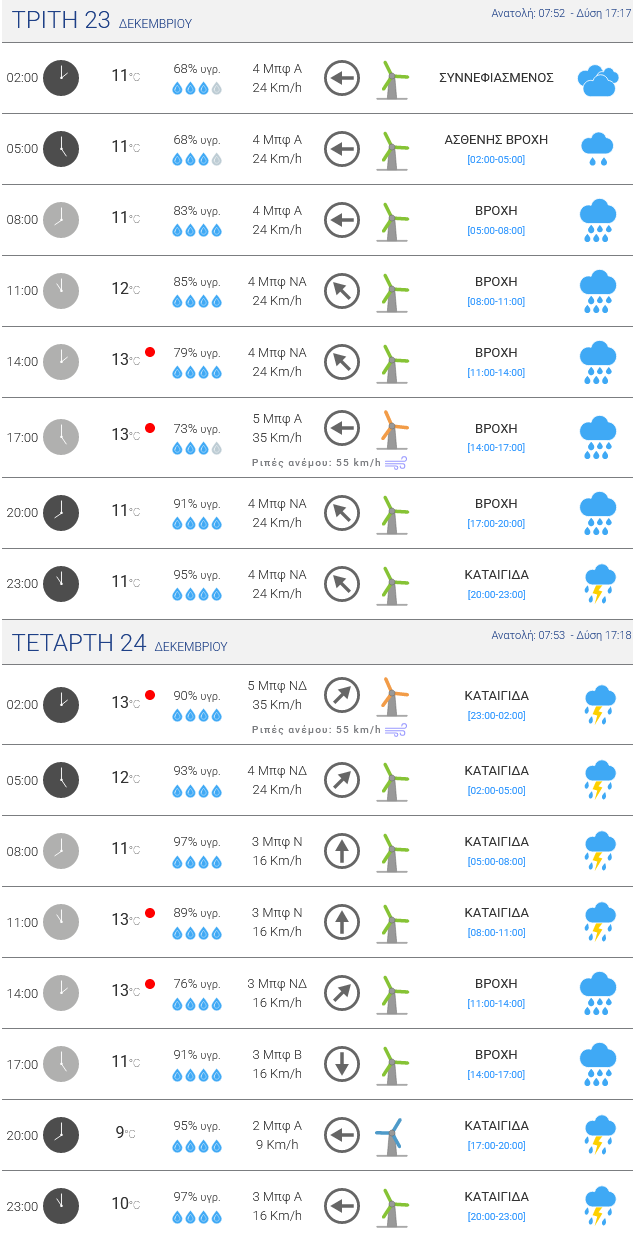 Άρτα: Κρύο και βροχές τα Χριστούγεννα [πίνακας]