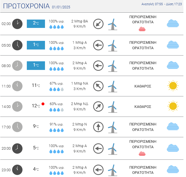 Τρίτη – Παραμονή Πρωτοχρονιάς Λιακάδα θα έχει η Ήπειρος την τελευταία μέρα της φετινής χρονιάς. Παγετός θα σημειωθεί τα ξημερώματα σε κλειστές ορεινές και ημιορεινές περιοχές. Οι άνεμοι θα είναι ασθενείς, από Νοτιοδυτικές, κυρίως, διευθύνσεις, ενώ η θερμοκρασία θα ανέβει λίγο, φτάνοντας το μεσημέρι τους 14°C-15°C στα πεδινά και τα παράλια, τους 12°C στα ημιορεινά και τους 10°C στα ορεινά.