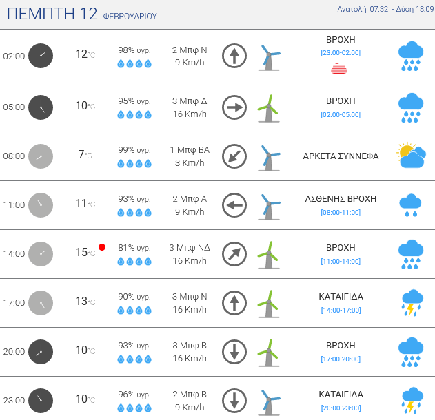 Πέμπτη: Μέχρι νωρίς το πρωί της Πέμπτης οι βροχές και οι καταιγίδες θα έχουν εξασθενήσει στο μεγαλύτερο μέρος της Ηπείρου, έτσι η μέρα θα ξεκινήσει και θα κυλήσει με γενικά άστατο καιρό. Θα υπάρχουν μικρά ανοίγματα με ήλιο, αλλά η συννεφιά θα αυξάνεται κατά περιόδους και θα αφήνει διάσπαρτες βροχές ή σύντομες μπόρες. Μεταξύ μεσημεριού κι απογεύματος ενδέχεται τα ανοίγματα να μεγαλώσουν πρόσκαιρα αρκετά, ωστόσο από αργά το απόγευμα οι νεφώσεις από το Ιόνιο θα πυκνώσουν ξανά κι ο καιρός θα επιδεινωθεί. Θα ξεκινήσουν βροχές και καταιγίδες, πιθανώς κατά τόπους ισχυρές, ενώ πυκνές χιονοπτώσεις θα σημειωθούν σε ορεινές περιοχές πάνω από τα 1200-1300 περίπου μέτρα.