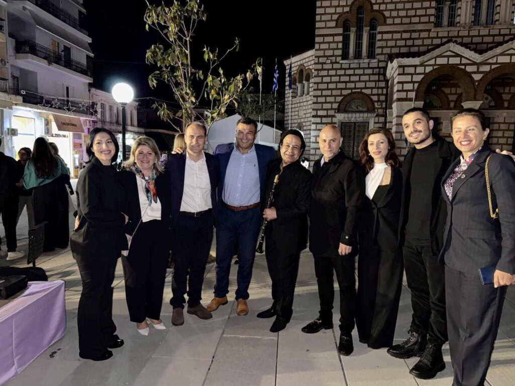 Με φόντο τον επιβλητικό ναό του Αγίου Δημητρίου, ο κορυφαίος σολίστας του κλαρίνου, Βασίλης Σαλέας, χάρισε στο κοινό μια ανεπανάληπτη μουσική βραδιά, γεμάτη  μυσταγωγία. Δίπλα του, με εξαιρετικές ερμηνείες, οι Στέλα και Λουκία Βαλάση, “έντυσαν” με φωνές τρυφερές τη βραδιά.