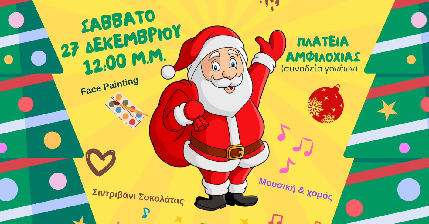 24/12/2025 Το Σάββατο 27 Δεκεμβρίου στις 12:00 θα πραγματοποιηθεί η χριστουγεννιάτικη δράση για τα παιδιά «Christmas Smile» Το Σάββατο 27 Δεκεμβρίου στις 12:00 θα πραγματοποιηθεί η χριστουγεννιάτικη δράση για τα παιδιά «Christmas Smile» που αναβλήθηκε το περασμένο…