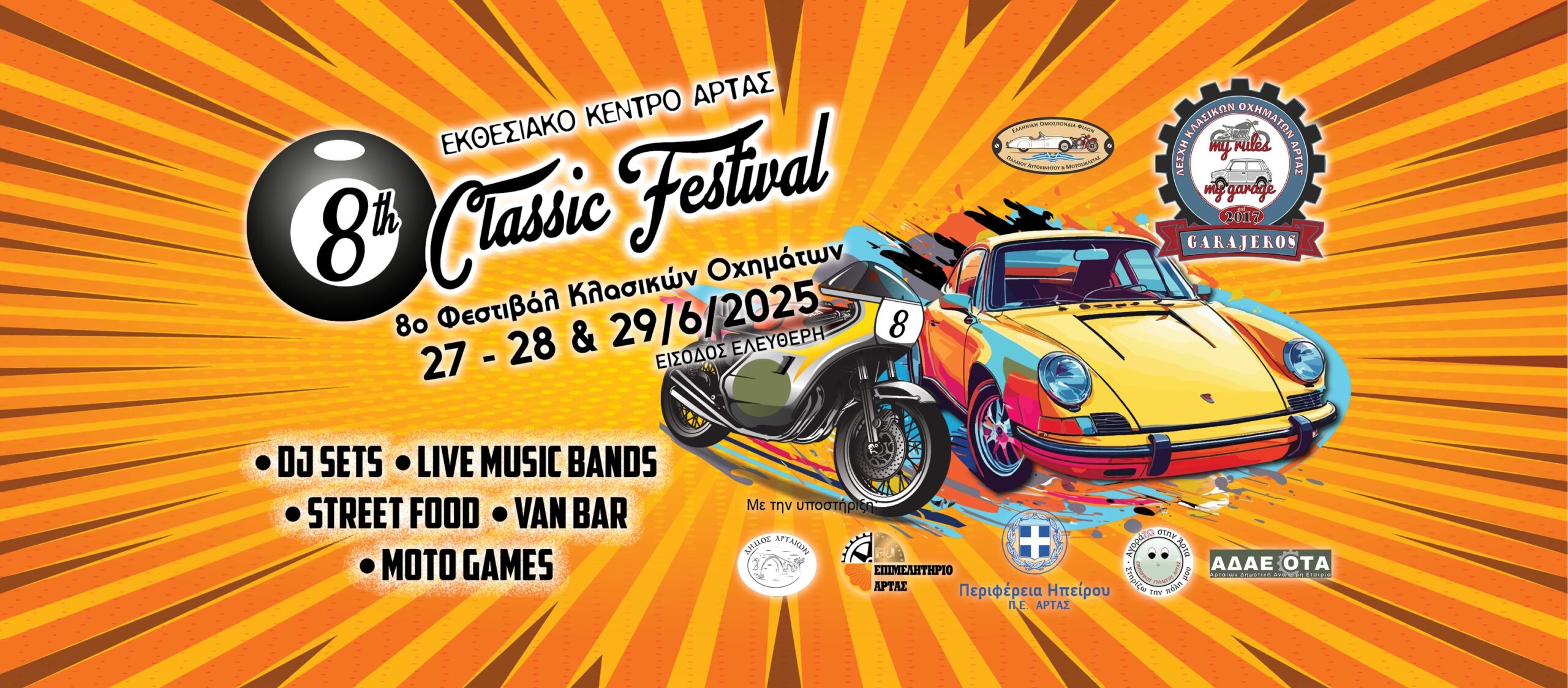27/06/2025 8ο Φεστιβάλ Κλασικών Οχημάτων Άρτας: 27 έως 29 Ιουνίου στο Εκθεσιακό Κέντρο Η Μεγαλύτερη γιορτή κλασικών οχημάτων επιστρέφει για 8η συνεχή χρονιά! Η Λέσχη Κλασικών Οχημάτων Άρτας προσκαλεί στο 8ο Φεστιβάλ Κλασικών…