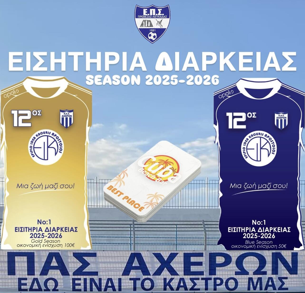 10/09/2025 Ο ΠΑΣ ΑΧΕΡΩΝ ανακοινώνει την διάθεση εισιτήριων διαρκείας, για την αγωνιστική περίοδο, 𝟐𝟎𝟐𝟓-𝟐𝟎𝟐𝟔. Ο ΠΑΣ ΑΧΕΡΩΝ ανακοινώνει την διάθεση εισιτήριων διαρκείας, για την αγωνιστική περίοδο, 𝟐𝟎𝟐𝟓-𝟐𝟎𝟐𝟔. Στο πλευρό του συλλόγου μας διαχρονικά βρίσκεται…