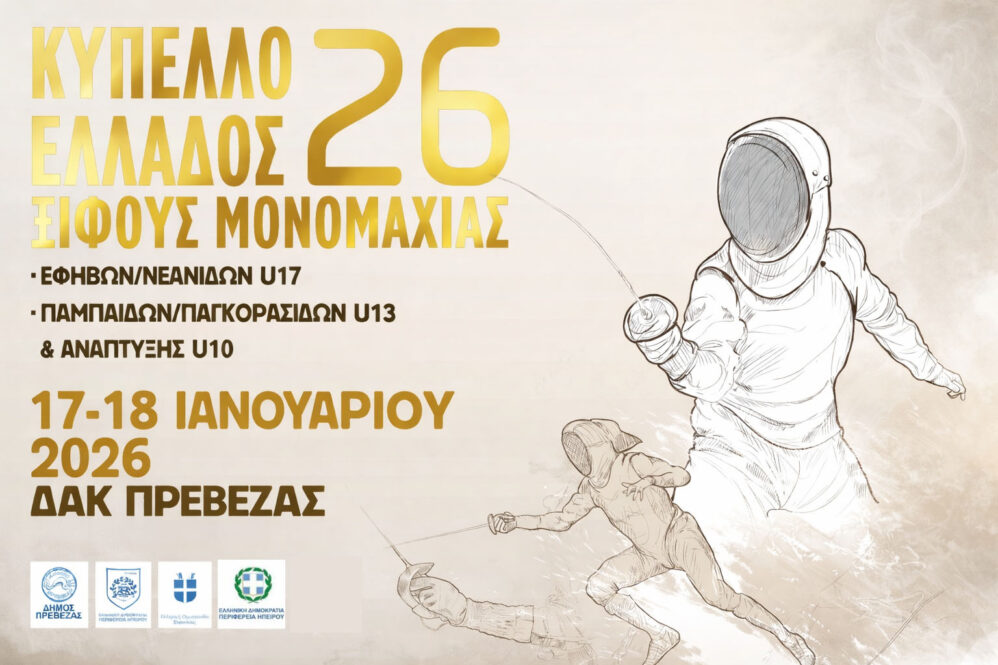 14/01/2026 Η Πρέβεζα υποδέχεται το Πανελλήνιο Μέλλον της Ξιφασκίας (17–18 Ιανουαρίου) Η πόλη της Πρέβεζας μετατρέπεται σε σημείο συνάντησης για την ελληνική ξιφασκία το προσεχές Σαββατοκύριακο 17 και 18 Ιανουαρίου. Περισσότεροι…