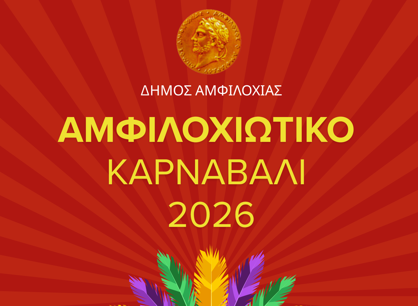 22/01/2026 Αμφιλοχιώτικο Καρναβάλι 2026 την Κυριακή 15 Φεβρουαρίου – Ξεκίνησαν οι εγγραφές Ο Δήμος Αμφιλοχίας διοργανώνει το Αμφιλοχιώτικο Καρναβάλι 2026 προσκαλώντας μικρούς και μεγάλους να γίνουν μέρος της μεγάλης αποκριάτικης γιορτής. ο…