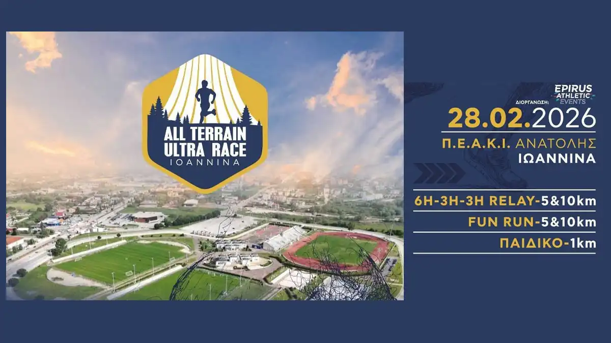 28/02/2026 Ιωάννινα: 1st All Terrain Ultra Race στο Πανηπειρωτικό Στάδιο – Πρόγραμμα Το 1st All Terrain Ultra Race έρχεται στις 28 Φεβρουαρίου 2026 στα Ιωάννινα, με το Πανηπειρωτικό Στάδιο να μετατρέπεται σε…