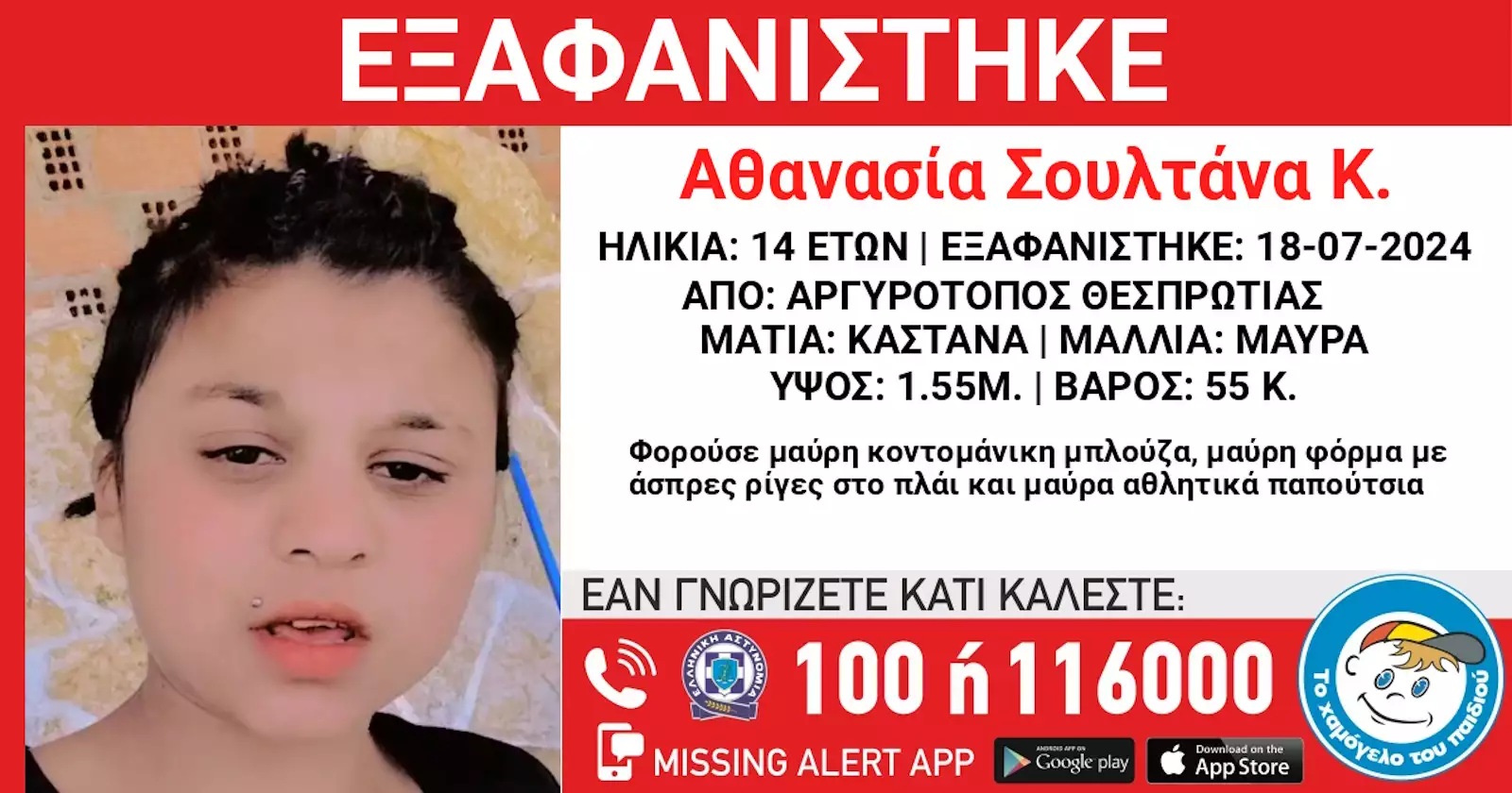 18/07/2024 Χαμόγελο Του Παιδιού: Εξαφανίστηκε η 14χρονη Αθανασία Σουλτάνα από τη Θεσπρωτία Συναγερμός σήμανε για την εξαφάνιση της 14χρονης Αθανασίας Σουλτάνας Κ. από το σπίτι της στον Αργυρότοπο Θεσπρωτίας, σύμφωνα με ανακοίνωση από το…