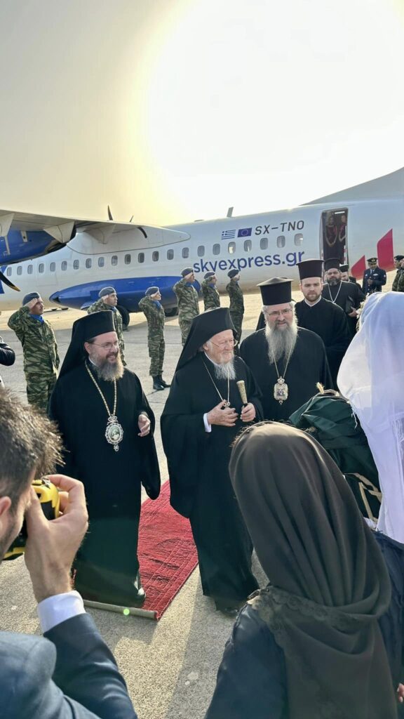 Τον Οικουμενικό Πατριάρχη υποδέχθηκαν ο Μητροπολίτης Αιτωλίας και Ακαρνανίας κ. Δαμασκηνός, ο δήμαρχος Ακτίου-Βόνιτσας Θανάσης Κασόλας, ο Αντιπεριφερειάρχης Νίκος Κατσακιώρης και Θανάσης Μαυρομμάτης, ως εκπρόσωποι της Περιφέρειας Δυτικής Ελλάδας και του Περιφερειάρχη Νεκτάριου Φαρμάκη, η Βουλευτής Aιτωλ/νίας Χριστίνα Σταρακά, ο βουλευτής Λευκάδας, Αθ. Καββαδάς κ.α