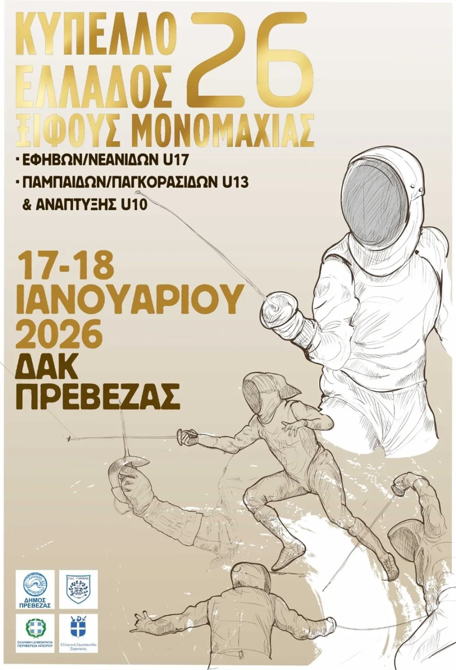 Η πόλη της Πρέβεζας μετατρέπεται σε σημείο συνάντησης για την ελληνική ξιφασκία το προσεχές Σαββατοκύριακο 17 και 18 Ιανουαρίου. Περισσότεροι από 250 νεαροί αθλητές και αθλήτριες από όλη την Ελλάδα θα βρεθούν στο ΔΑΚ Πρέβεζας για μια σημαντική διοργάνωση που υλοποιεί ο ΠΑΣ ΓΙΑΝΝΙΝΑ, με την υποστήριξη της Περιφέρειας Ηπείρου και του Δήμου Πρέβεζας.