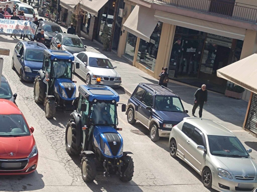 Αγρότες, εργάτες, μαθητές και συλλογικότητες απαίτησαν δικαιοσύνη για τα θύματα της σιδηροδρομικής τραγωδίας. Νωρίτερα, οι αγρότες, αποχωρώντας από το μπλόκο, έκαναν στάση στο γραφείο του κυβερνητικού βουλευτή Βασίλη Γιόγιακα, όπου απέκλεισαν συμβολικά την είσοδο με μπάλες τριφύλλι, σημειώνοντας πως η αποχώρηση από το μπλόκο δε σημαίνει και σταμάτημα του αγώνα, ο οποίος θα συνεχιστεί στα πλαίσια των πανελλαδικών αποφάσεων, αφού τα αιτήματά τους – θεωρούν πως – δεν έχουν ικανοποιηθεί.