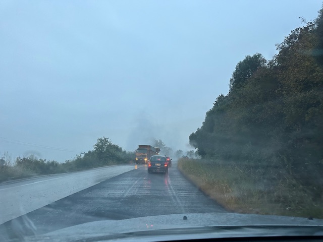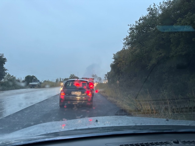 Όπως βλέπετε τα αυτοκίνητα κάνουν ουρά σε έναν πολύ επικίνδυνο δρόμο που έχουν γίνει δυστυχήματα.