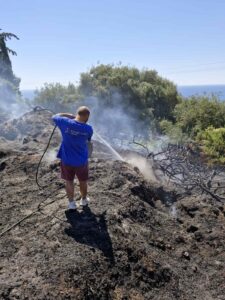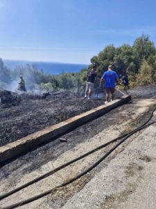 Η Πυροσβεστική κινητοποίησε σημαντικές δυνάμεις ενώ παράλληλα η εγρήγορση τον εθελοντών της περιοχής κατάφεραν να ελέγξουν και να κατασβήσουν τη φωτιά.