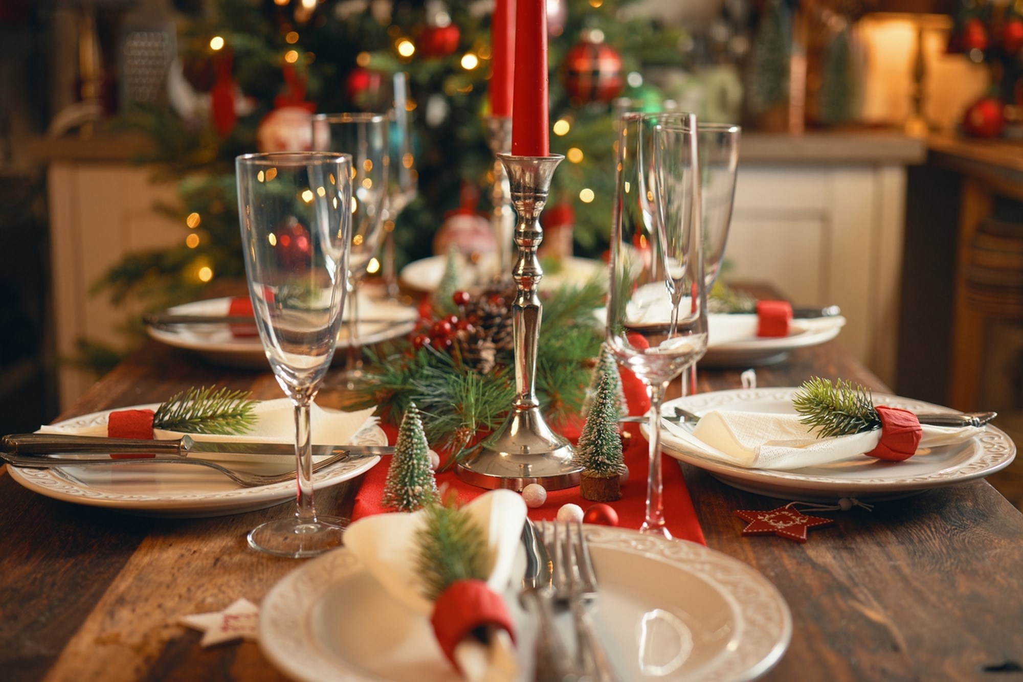 -Κλασικό & πολυτελές look: επίλεξε ένα λινό ή σατέν τραπεζομάντηλο σε βαθύ κόκκινο, κυπαρισσί ή εκρού.