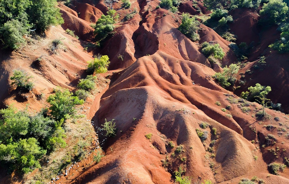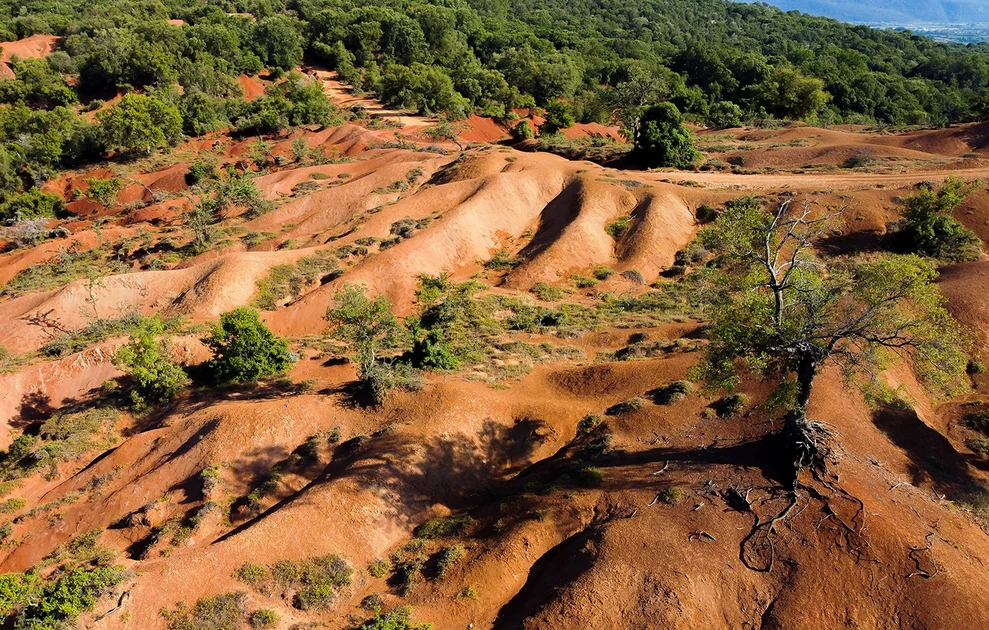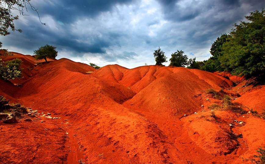 Αυτό το μοναδικό και ιδιαίτερο μέρος, σύμφωνα με τους γεωλόγους είναι στην ουσία ένα προϊστορικό καρστικό βύθισμα. Αυτό δεν είναι τίποτα άλλο από ένα χαμηλό οροπέδιο κόκκινης γης, που οι βροχές «μετάλλαξαν» στο τοπίο με τους λοφίσκους και τις χαράδρες.