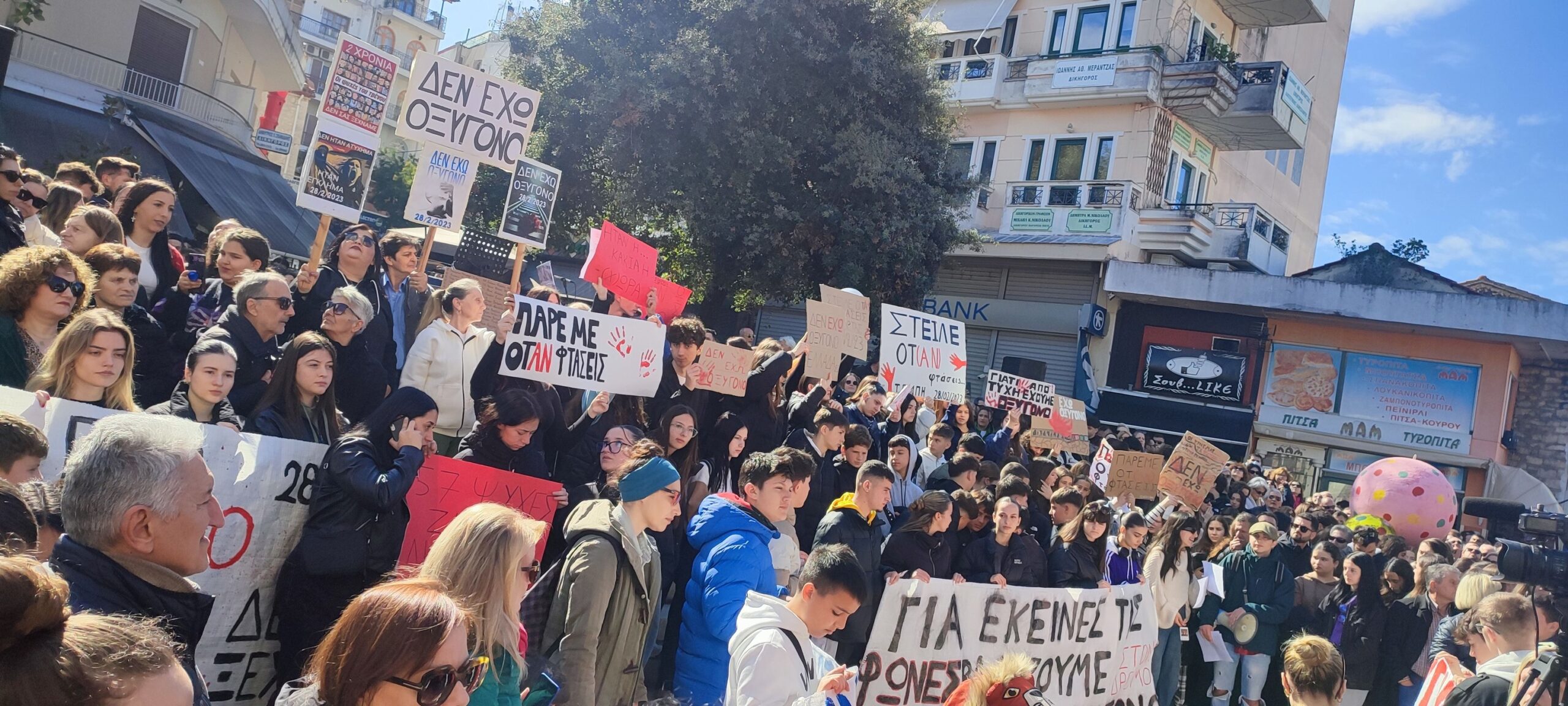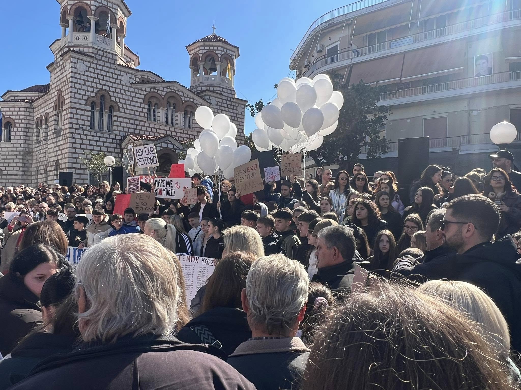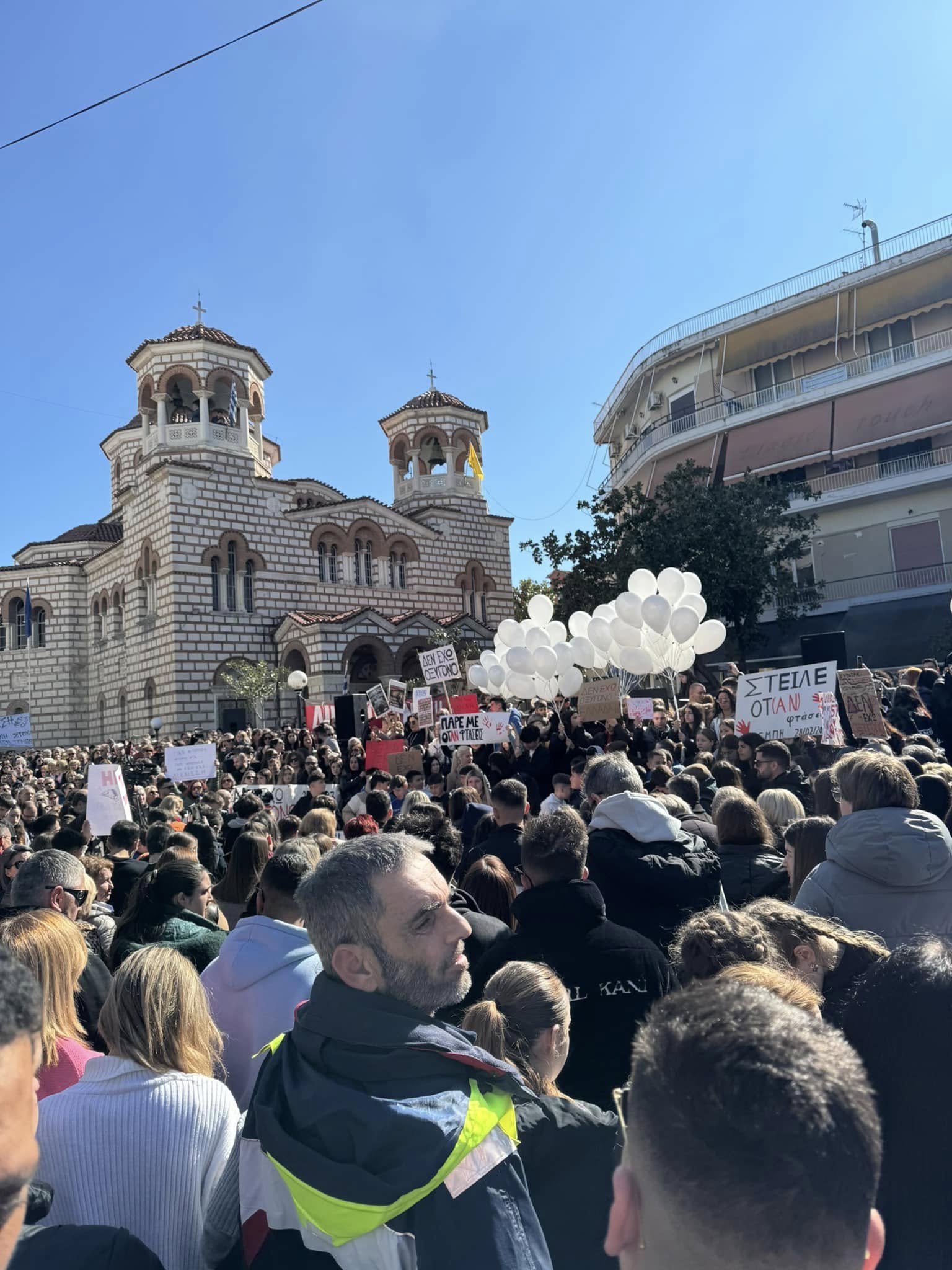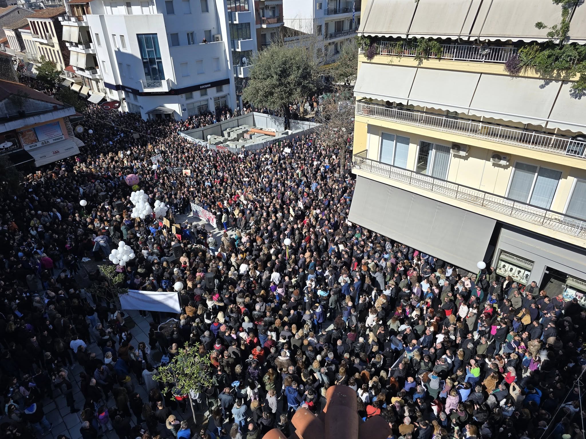 Άρτα – Πρωτοφανή συγκέντρωση για την συγκλονιστική τραγωδία της σιδηροδρομικής σύγκρουσης στα Τέμπη.